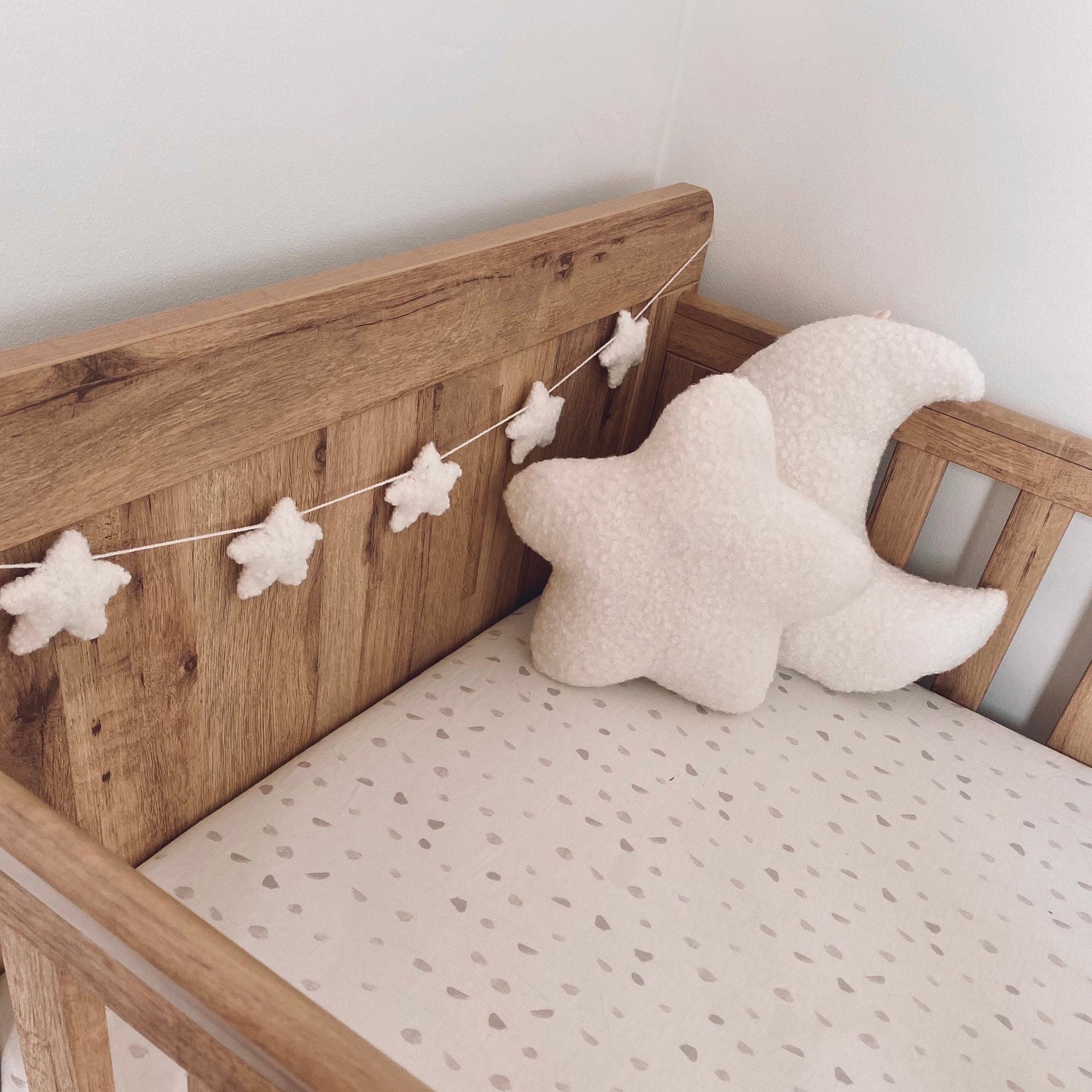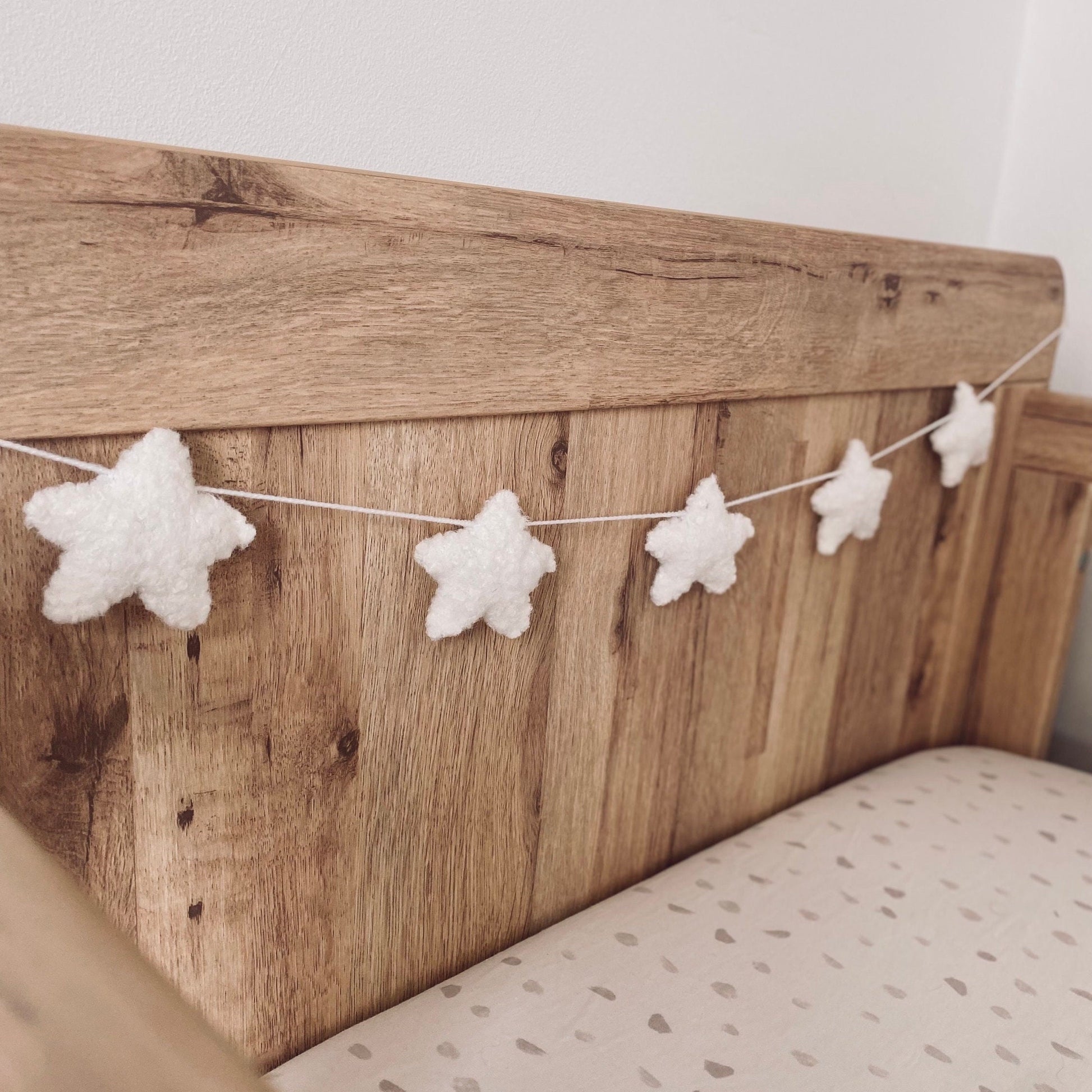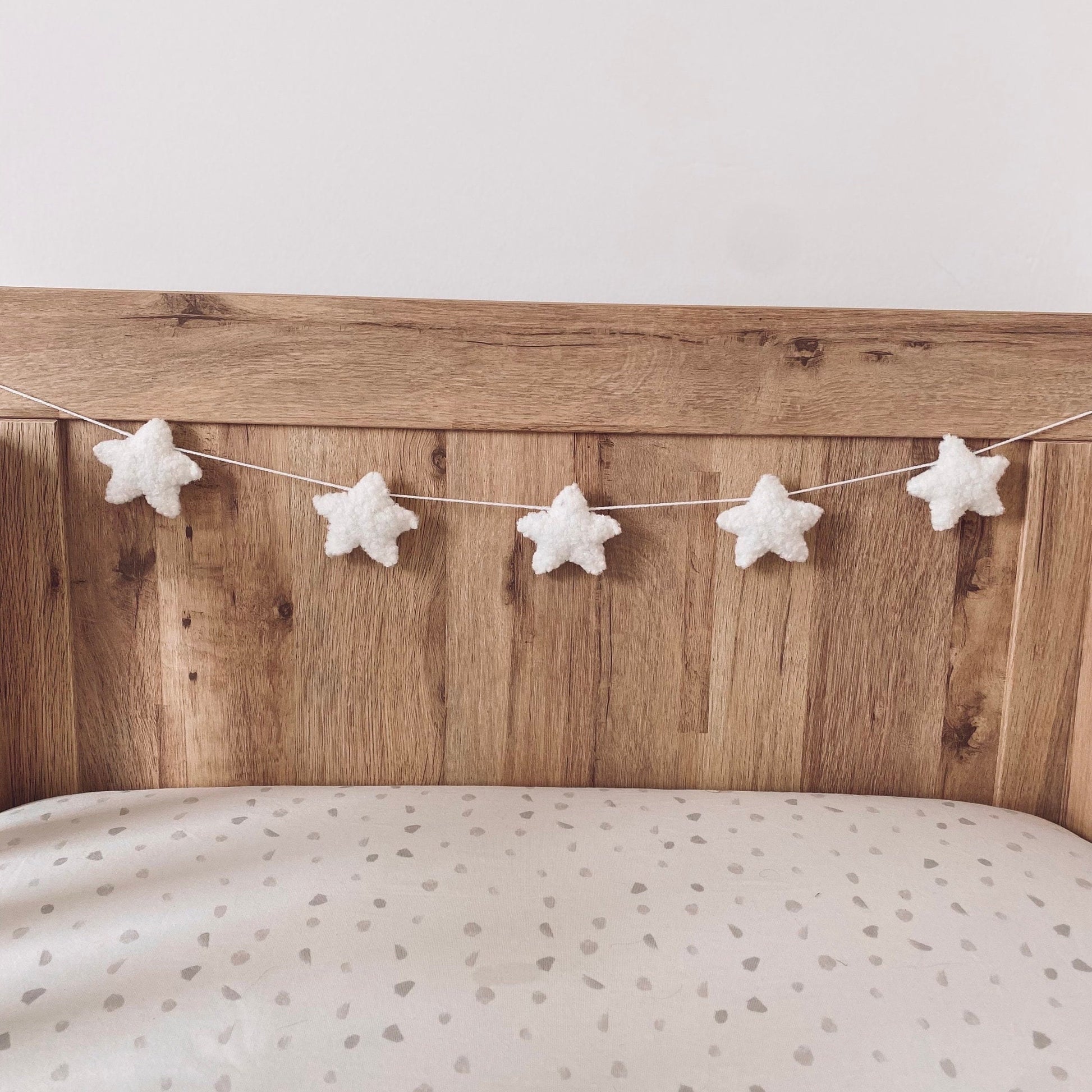 Create a soft and dreamy atmosphere in your little one’s space with our star garland, handmade from bouclé fabric in a neutral tone. This nursery wall hanging adds a touch of texture to baby rooms, kids’ bedrooms, or playrooms — making it a charming and versatile décor piece.