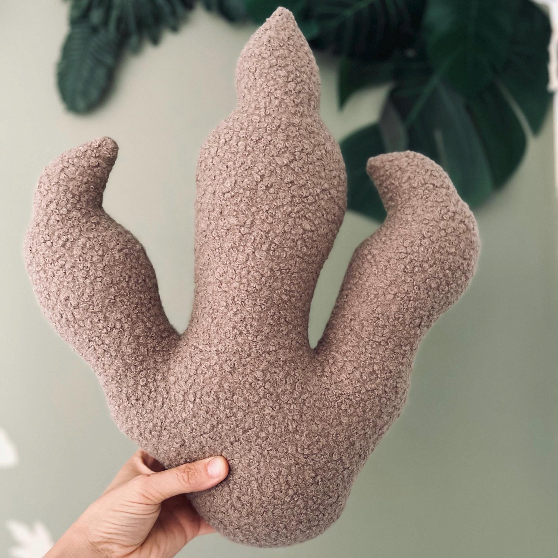Add a playful prehistoric touch to your little one’s space with this dinosaur footprint pillow, the perfect accent for a dino-themed nursery or kids’ bedroom. Handmade from soft, textured bouclé fabric, this cosy pillow brings both comfort and style to your child’s room. Shaped like a dinosaur footprint, this unique pillow is ideal for nurseries, toddler beds, playrooms, or reading nooks. It also makes a great birthday present, or finishing touch for a dinosaur bedroom theme.