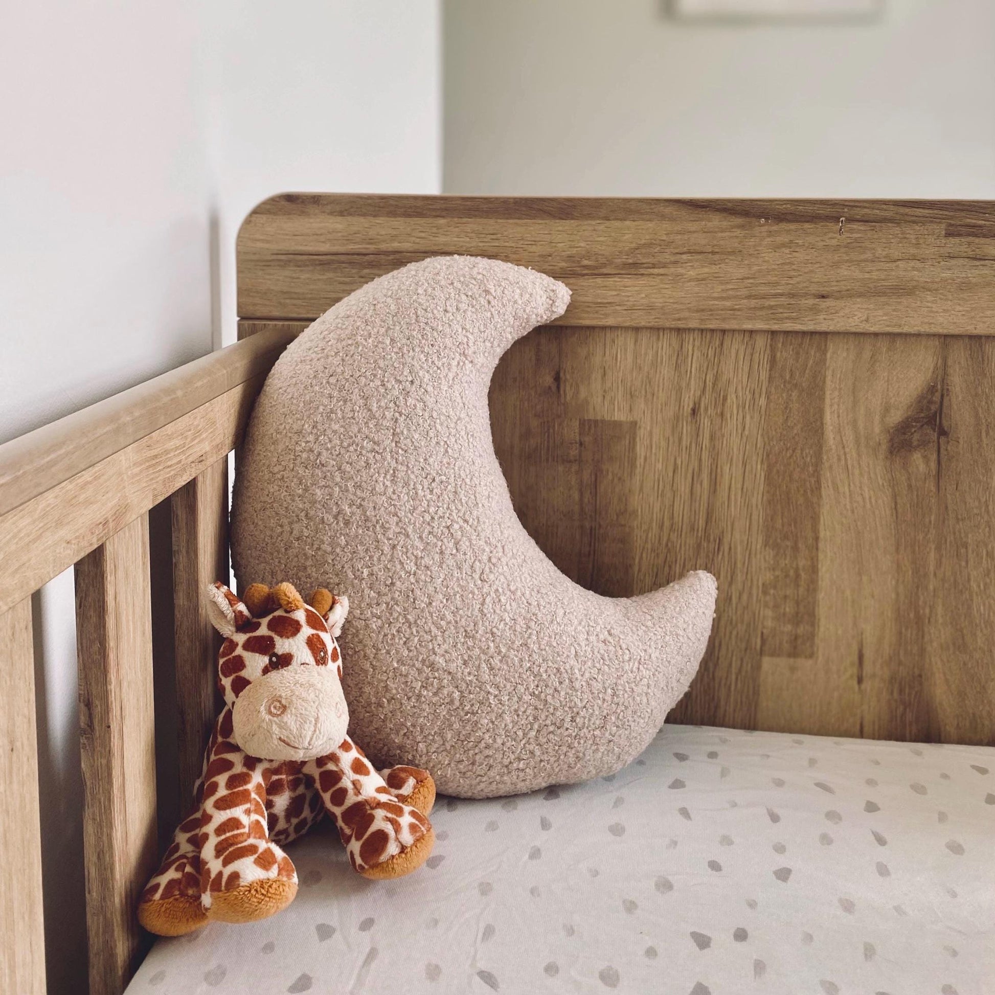 Create a soft, dreamy atmosphere in your little one’s space with our moon pillow, handmade from bouclé fabric in calming, neutral tones. This nursery addition adds a touch of whimsy and texture to baby rooms, kids’ bedrooms, or playrooms — making it a charming and versatile nursery décor piece.
